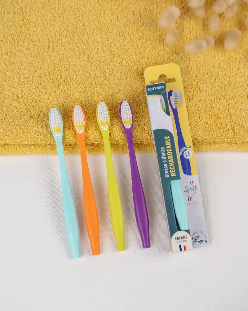 Découvrez notre brosse à dents écologique pour enfants, parfaite pour initier votre famille à un brossage responsable ! Fabriquée en France avec du bioplastique, cette brosse à dents innovante réduit jusqu’à 90 % le plastique jetable. Vendu avec une tête interchangeable, et vous pouvez choisir parmi 2 couleurs vives et amusantes qui plairont à vos enfants.
