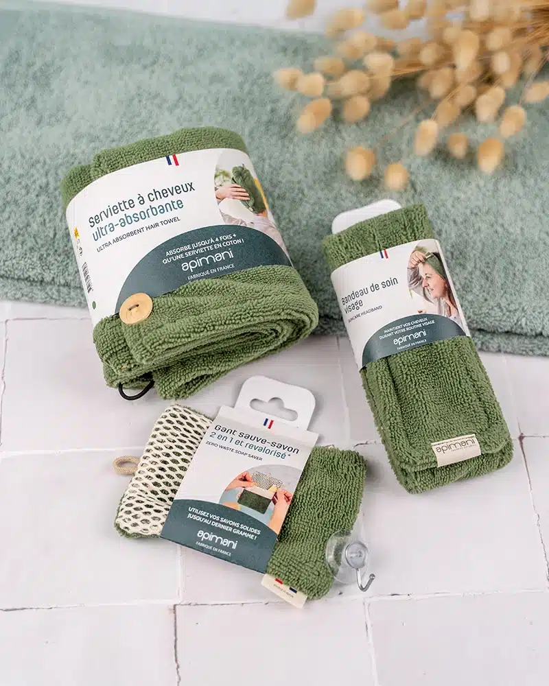 Ce joli coffret combine trois essentiels textiles pour une routine de soin skincare pratique, douce, complète et fabriqués en France à partir de viscose de bambou revalorisée. Disponible en cinq coloris assortis, ce coffret skincare comprend également une ventouse crochet blanche pratique pour suspendre et faire sécher le gant après chaque utilisation.